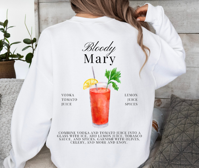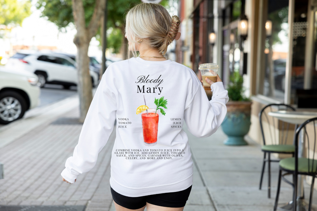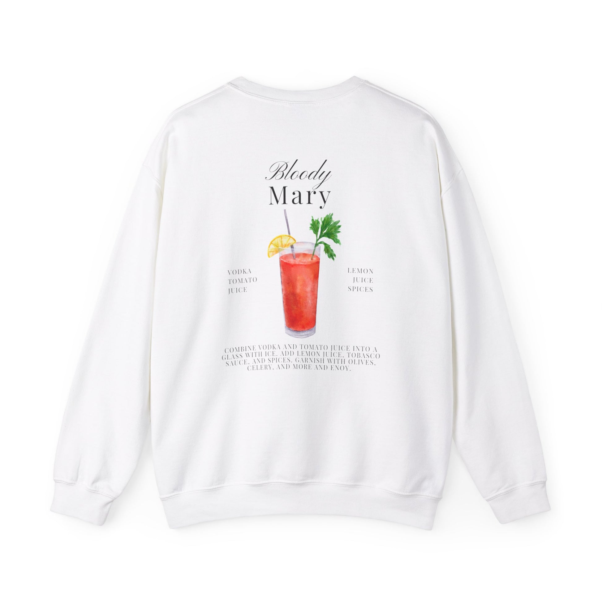Bloody Mary graphic crew neck sweatshirt. Ideal for any situation, this unisex heavy blend crewneck sweatshirt is pure comfort. These garments are made from polyester and cotton. This combination helps designs come out looking fresh and beautiful. The collar is ribbed knit, so it retains its shape even after washing. No itchy side seams.